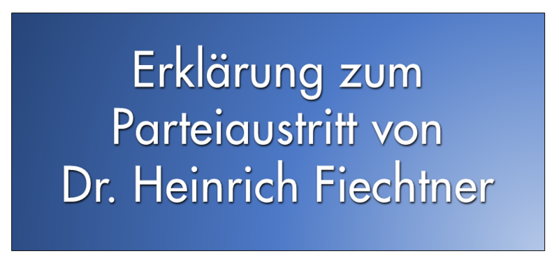 Entgegen anderslautender Pressemeldungen sieht sich die Kreispartei durch den Austritt von Herrn Dr. Fiechtner keineswegs in einer Krise, sondern begrüßt diesen ausdrücklich als konsequenten Schlusspunkt der bereits seit längerer Zeit beobachtbaren Entfremdung zwischen Fiechtner und der AfD.