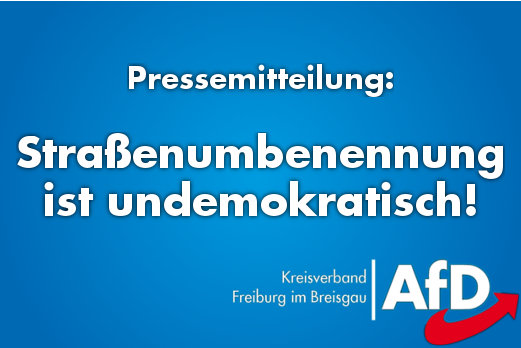 „Wenn das so weiter geht, haben wir in Freiburg bald nur noch Amselwege oder Lindenstraßen. Aus unserer Sicht sollte das Votum der Bewohner der betroffenen Straßenzüge, die sich mehrheitlich für eine Beibehaltung aussprechen, bindend sein. Alles andere ist undemokratisch und Zeichen der Arroganz ideologiegetriebener Bilderstürmer“ ergänzt Dr. Detlef Huber, stellvertretender Kreisvorsitzender der AfD in Freiburg.