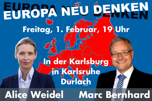 Am Freitag, 1. Februar 2019 veranstaltet der AfD Ortsverband Durlach-Grötzingen-Bergdörfer ab 19 Uhr eine Veranstaltung in der Durlacher Karlsburg (Pfinztalstr. 9). Einlass ist ab 18:30 Uhr.