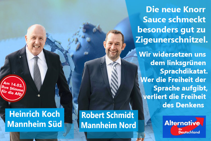 Die linksgrüne Sprachpolizei hat ein weiteres Mal zugeschlagen: Bei Knorr darf die Zigeunersauce in Zukunft nicht mehr Zigeunersauce heißen, sondern sie wird umbenannt in „Paprikasauce Ungarische Art“. Für diese Umbenennung haben die allermeisten Bürger allerdings überhaupt kein Verständnis. Diese Posse ist aber bezeichnend für den derzeitigen Diskurs in diesem Land: Ob Negerkuss oder wie man in Mannheim sagt: Mohrenkopf , Sarottimohr oder Zigeunerschnitzel: Wir müssen uns dem Willen einer kleinen, aber lautstarken und medial verhätschelten, linken Minderheit beugen.
