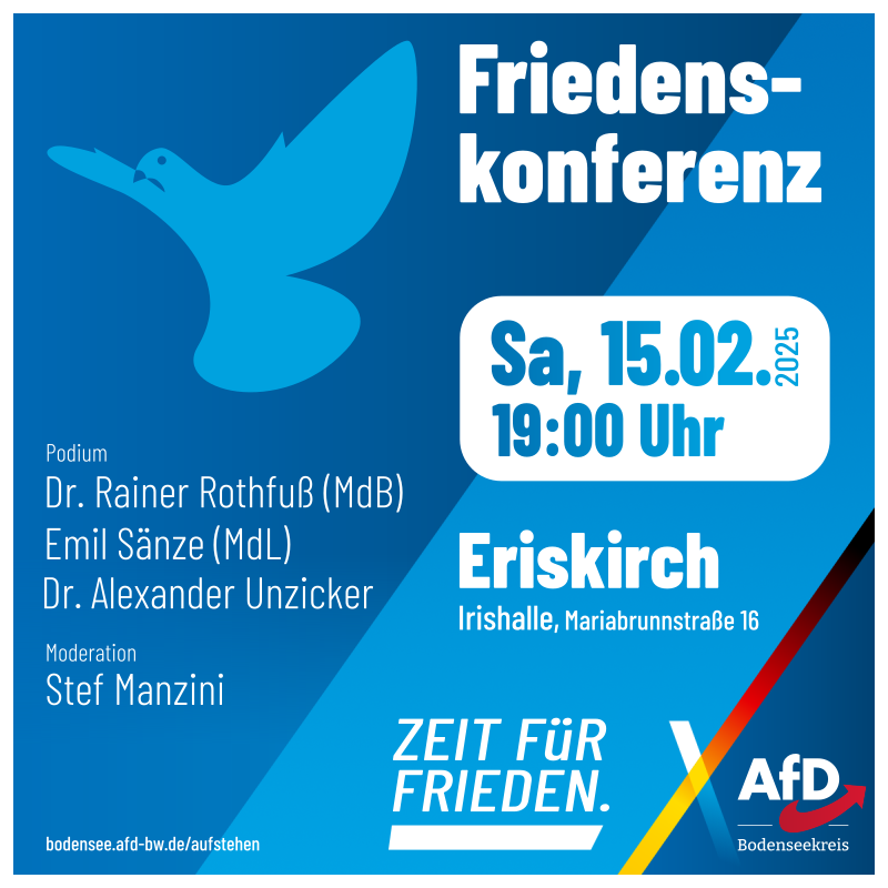 Stef Manzini von der stattzeitung.org gibt schon mal einen Einblick, worum es bei der Friedenskonferenz heute Abend in Eriskirch gehen wird: