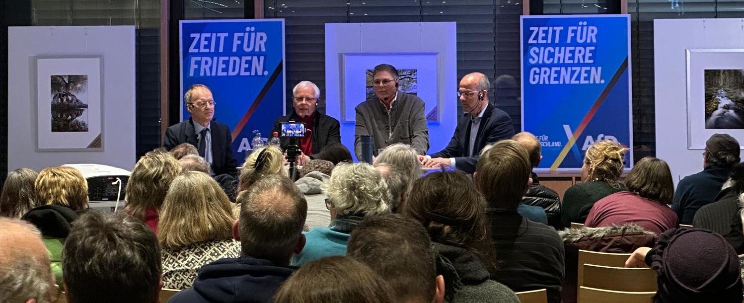 Gestern waren Emil Sänze, Dr. Rainer Rothfuß und Dr. Alexander Unzicker zu Gast auf dem Podium der Friedenskonferenz am Bodensee. Stef Manzini von der stattzeitung.org führte durch den Abend und stellte gleich zu Beginn fest: Der Zeitpunkt für eine Zusammenkunft zum Thema Frieden hätte nicht besser gewählt werden können, denn erst am Vortag zeichnete sich eine Revolution der internationalen Sicherheitspolitik ab. Der neue US-Präsident Donald Trump kündigte ohne Rücksprache mit dem Kiewer Regime an, mit Russlands Präsidenten Vladimir Putin über das Schicksal der Ukraine zu verhandeln. Und der neue US-Verteidigungsminister Pete Hegseth verwarf offiziell eine NATO-Mitgliedschaft der Ukraine. Damit ist eine Beilegung des Ukraine-Konflikts denkbar, noch bevor ein womöglich nicht abwendbarer Bundeskanzler Friedrich Merz mit der Lieferung von Taurusraketen Öl ins Feuer kippen und Deutschland in einen Krieg mit Russland hineinziehen kann. Die befreiende Rede des US-Vizepräsidenten James David Vance auf der Münchener Sicherheitskonferenz und sein Treffen mit Dr. Alice Weidel, Kanzlerkandidatin der Friedenspartei AfD, sind weitere Zeichen für den Anbruch einer neuen Epoche von Friedenspolitik.