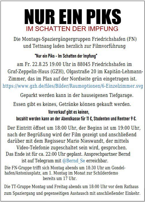 Die Montagsspaziergänger Friedrichshafen und Tettnang laden herzlich zur Filmvorführung ein:
