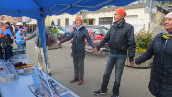 Gestern waren wir bei der Friedenskette Bodensee mit einem Infostand in Meersburg dabei und trotzten gelegentlichen Windböen und kurzen Regenschauern.