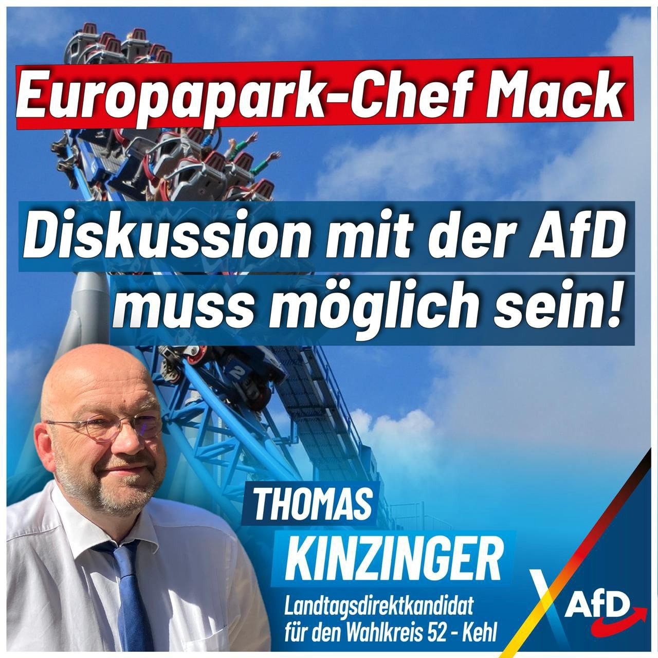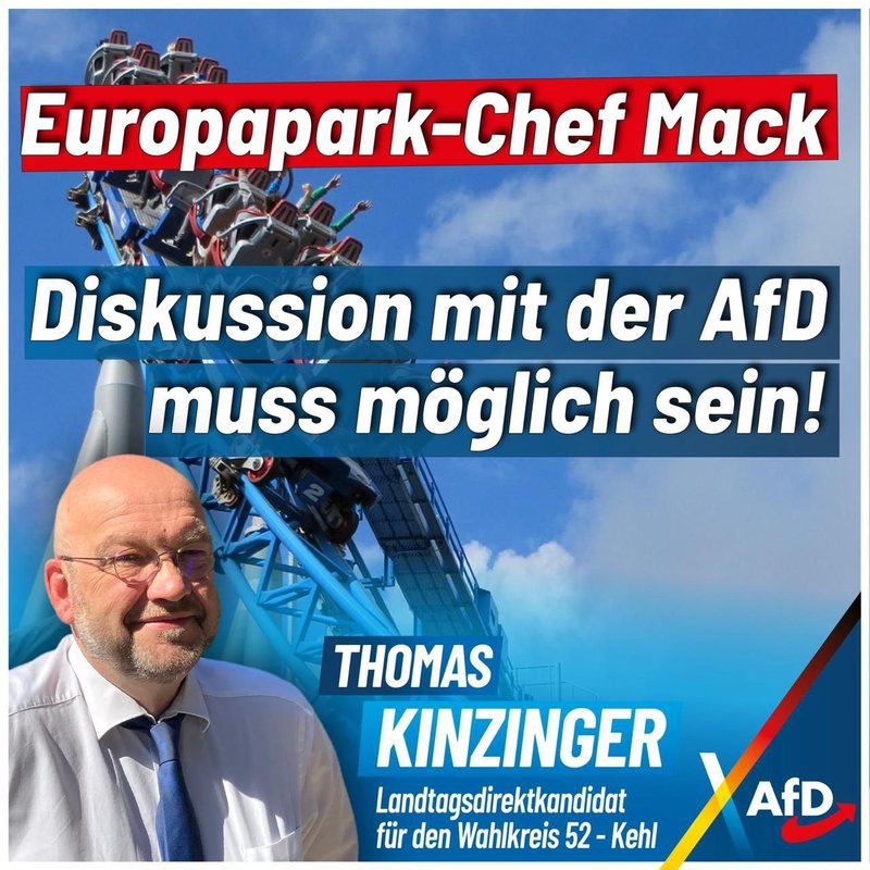 Europa-Park-Gründer Roland Mack hat im Umgang mit der AfD für einen offenen Austausch geworben. Dass man mit Menschen spreche, die immerhin einen hohen Anteil an Wählerstimmen ausmachten, halte er für notwendig und richtig, so der 76-Jährige in einem Gespräch mit dem «Südkurier». Dem Austausch von Argumenten sollte man offen gegenüberstehen, sagte Mack. «Wir müssen für Gespräche immer offen sein.»