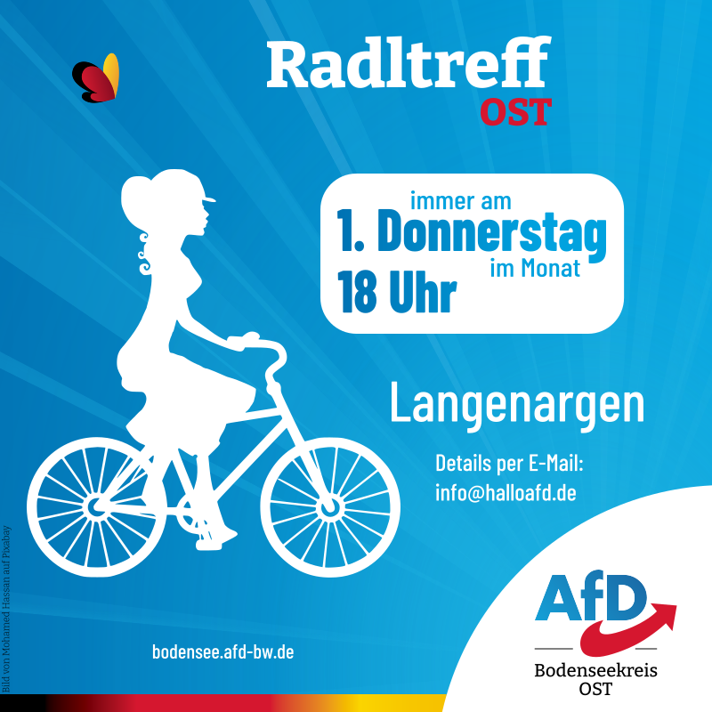 Ausnahmsweise nicht am 1. Donnerstag im Monat, sondern am Donnerstag, den 8. Januar 2026 um 18 Uhr ist wieder der AfD-Radltreff in Langenargen.
