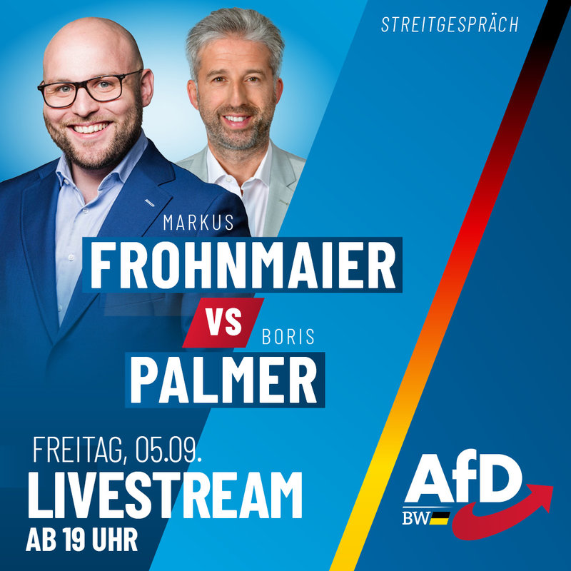 Streitgespräch Frohnmaier vs. Palmer | Am 5. September – Jetzt Livestream vormerken und Kanäle verbreiten!