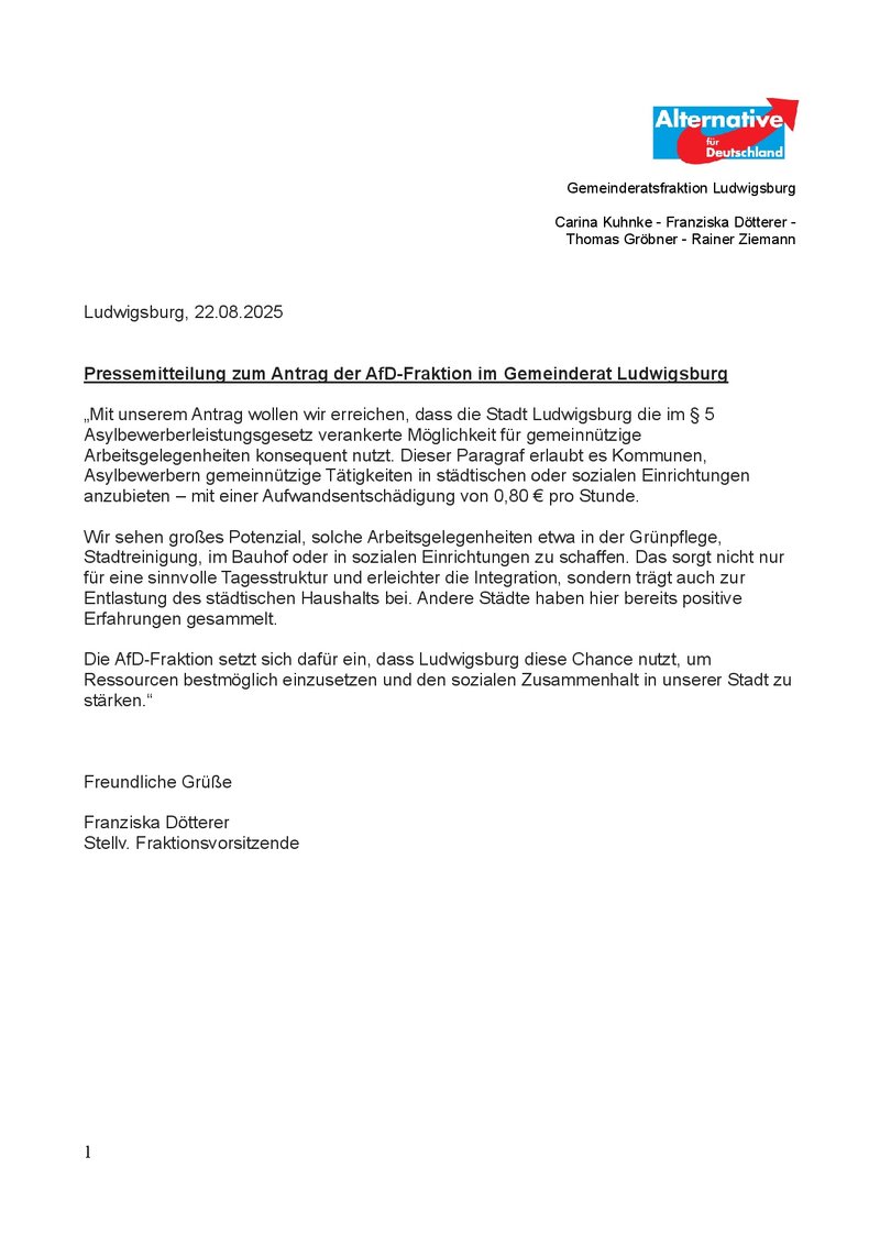 Antrag unserer Gemeinderatsfraktion Ludwigsburg