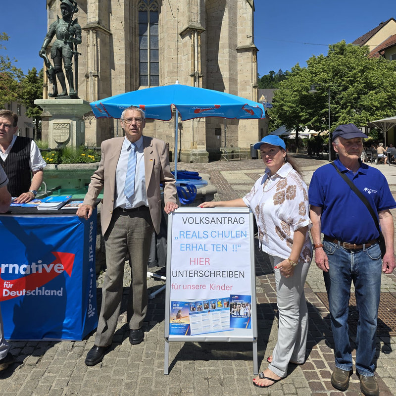 Am Freitag, dem 20.06.2025 waren wir zunächst mit einem sehr gut besuchten Infostand am Rande des Wochenmarktes in Albstadt-Tailfingen mit der dortigen Bevölkerung im Gespräch. Danach konnten sich die Mitbürger in Albstadt-Ebingen auf dem Rathausplatz bei uns  bis in die Abendstunden informi...