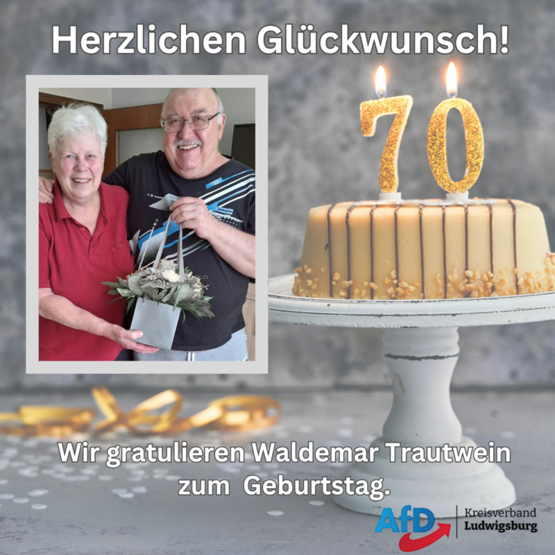 Im Namen des Kreisverband Ludwigsburg gratulierte die stellvertretende Kreissprecherin Angelika Stosiek unserem langjährigen Mitglied Waldemar Trautwein zum 70. Geburtstag und bedankte sich für die Treue zu unserer AfD!
