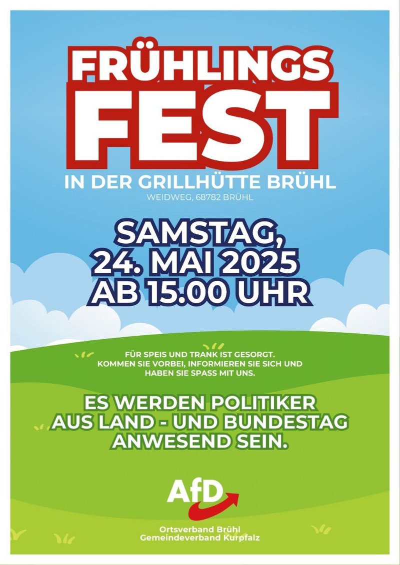 Der Kreisverband Baden-Baden/Rastatt der Alternative für Deutschland (AfD) lädt am Donnerstag, den 22. Mai 2025, um 18.00 Uhr alle interessierten Bürger zu seinem politischen Stammtisch im Hotel Brückenhof in Rastatt ein. Wir werden über aktuelle Themen diskutieren und freuen uns über rege Te...