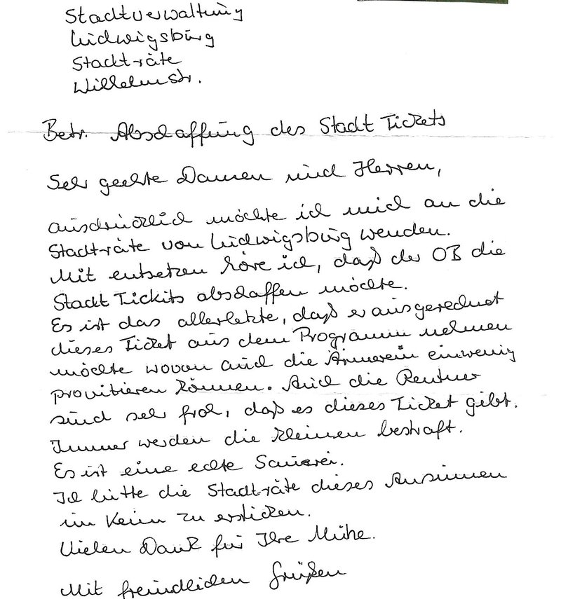 Der Ludwigsburger Gemeinderat zur Abschaffung des StadtTickets.