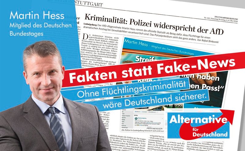 Die Stuttgarter Zeitung hat die Behauptung aufgestellt, Martin Hess, MdB hätte gesagt, 90 Prozent aller Straftäter seien Nichtdeutsche. Dies sind Fakenews! Lesen Sie dazu den offenen Brief von Martin Hess: Sehr geehrte Damen und Herren, am 6. April hat das Polizeipräsidium Ludwigsburg die Poliz...