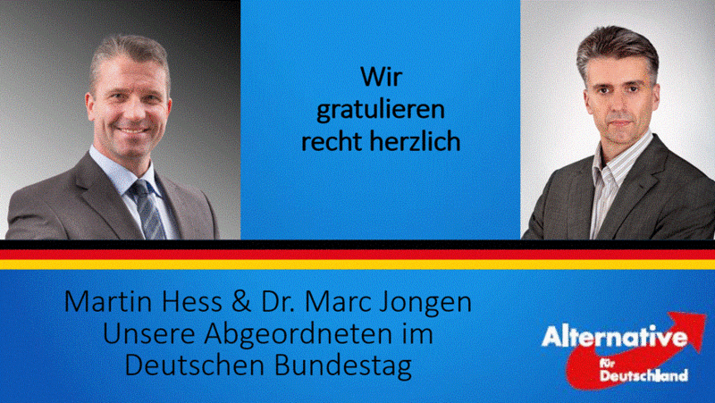 AfD im Bundestag - wir gratulieren unseren beiden Kandidaten Martin Hess & Dr. Marc Jongen für den Einzug in den Deutschen Bundestag